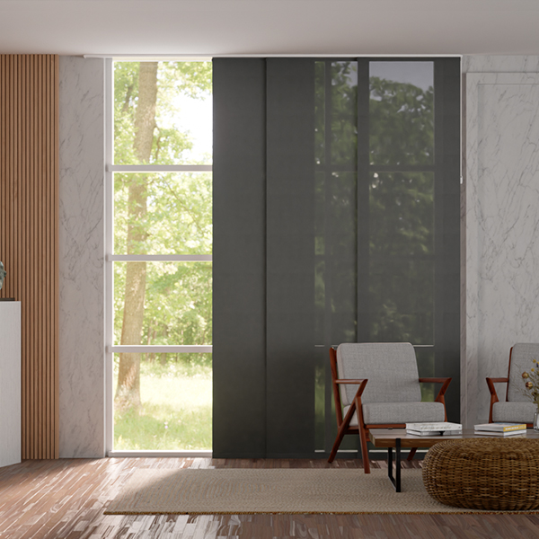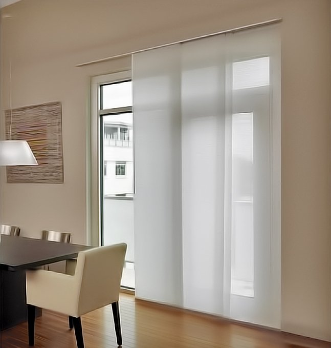 Los paneles japoneses y las cortinas verticales de Valero Decoración son perfectos para grandes ventanales y puertas corredizas.